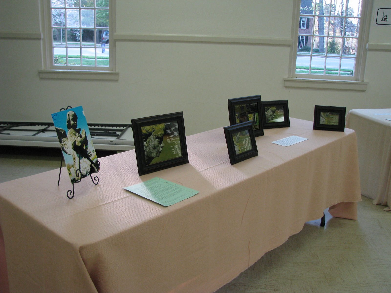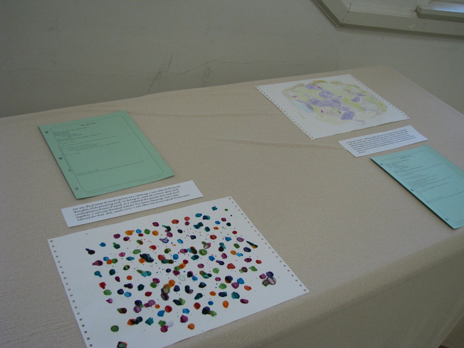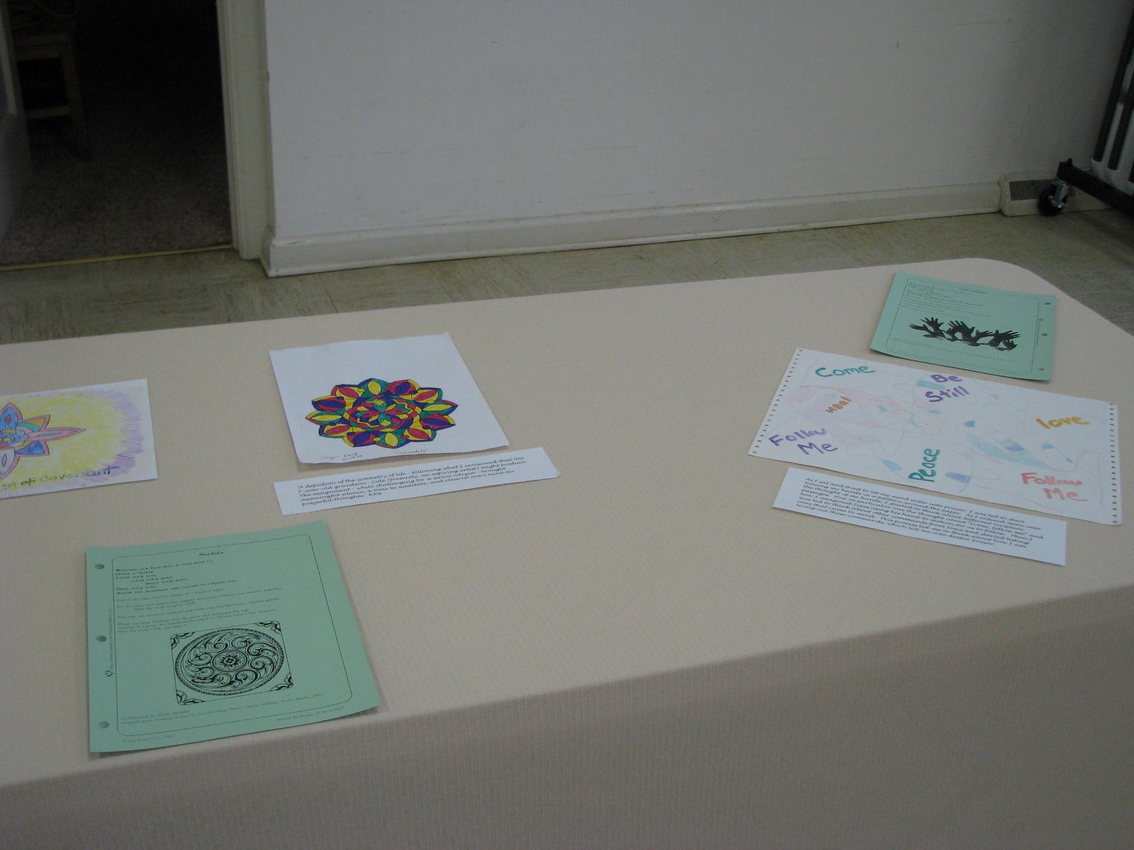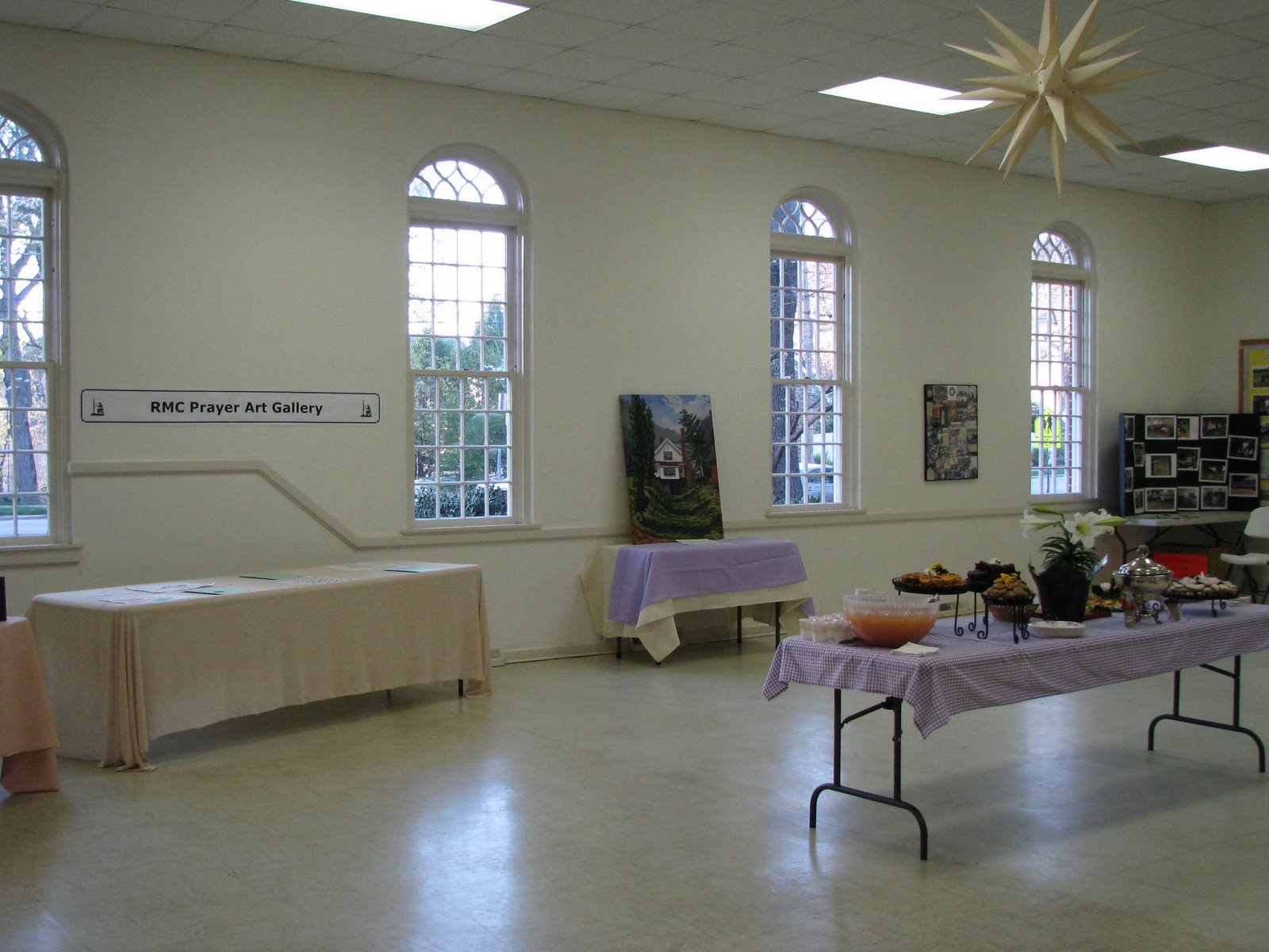 Here is a view of the RMC Fellowship Hall set up for the Prayer Art Gallery Opening for Holy Week. We premiered the Gallery on Sunday night of Holy Week. These different pieces of art were contributed by various congregation members to show different ways they have used art to pray and be in conversation with God.