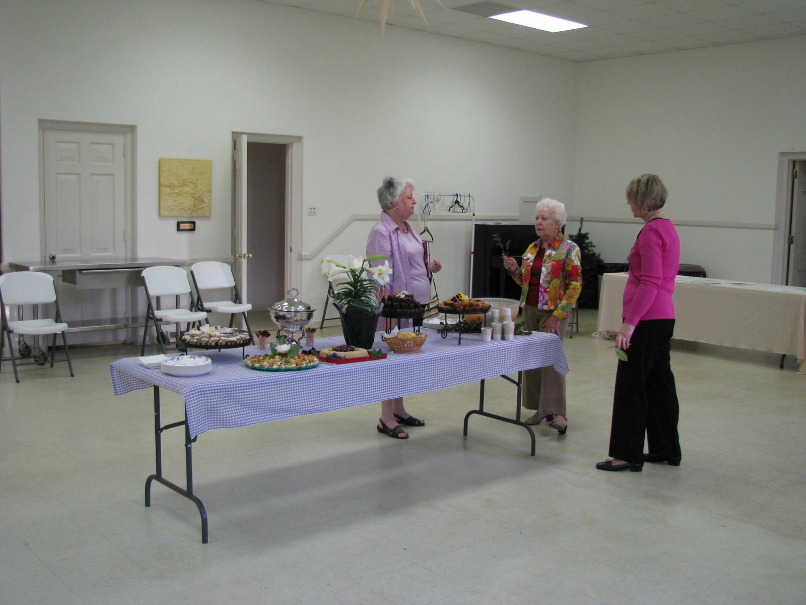 Here, Christine Wall, Mae Marshall, and Diana Bordeaux gather around the Refreshment table getting everything finalized for the Gallery premiere!
