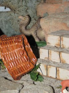 The Women go to anoint the body and find the tomb empty. “The Lord is Risen. The Lord is Risen, INDEED!!!” (I also find this image particurally interesting, because in the Christmas putz, this is the manger area where Jesus is born. The place of resurrection is also the place of new life–how cool!)