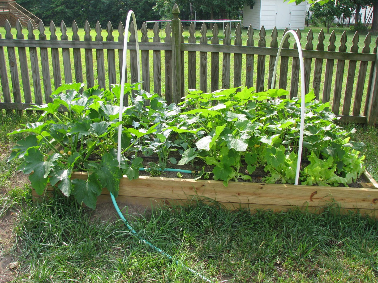 All of the sudden one day last week I looked out in the backyard, and was amazed to see our garden. It’s huge–so huge in fact that yesterday afternoon we spent time digging up some of the squash plants and transferring them back to big pots to make some room for the rest of the garden–I guess I should have listened to the spacing directions on the package better! Amazingly, after only a few weeks our lettuce is ready to eat. We picked our first lettuce Friday night, and it was so exciting to eat our first real dinner in our new house and enjoy the lettuce of our labors.