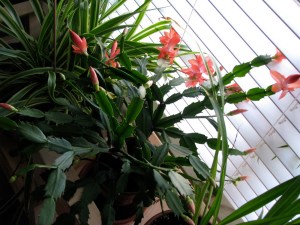 On my search for hope to help with this waiting of Advent, I began looking around intentionally for signs. Signs of God’s presence and what is about to take place, signs of the breath just before the curtain rises. Then I woke up one morning this week and saw it–right there in the window–my two Christmas Cacti were blooming. Not just one bud, but three flowers open, and the rest of the plants about the burst open. I am always amazed when these plants bloom, given my track record of over or under-watering. One of these plants is quite old. The other one is an off-shoot of the first that I rooted years ago, and has become another beautiful plant, so they sit in the window almost like a sign of rebirth and new life. Seeing these blooming plants led me to look with new eyes again–where else do I see sign’s of God’s hope in my midst? Well, the plants I got at the plant sale are still blooming. My biggest surprise was the Gerber daisy from earlier this year. It is still alive and blooming now too. Now if you had seen this a month ago, you would have agreed with me that the daisy had no hope of survival. I had actually given up on it, due to my over abundance of watering, but I just hadn’t thrown it in the compost bucket yet. I’m still amazed it’s blooming, especially now. It’s the end of November and I have beautiful plants flowering! What signs of hope for these damp, dark November days.