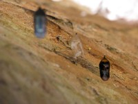 When Steve and I visited Monticello in Charlottesville, VA this past October, we witnessed transformation in process. Underneath a cellar overhang there were Monarch butterflies transforming. The chrysalis’ were hanging there, and we could see one that was almost ready to hatch. The wings were visible through the clear covering.