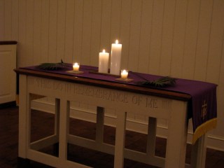 The front communion table with the candles and palm branches reminding us of the palms from Palm Sunday last year which are then traditionally used to create the ashes for Ash Wednesday.