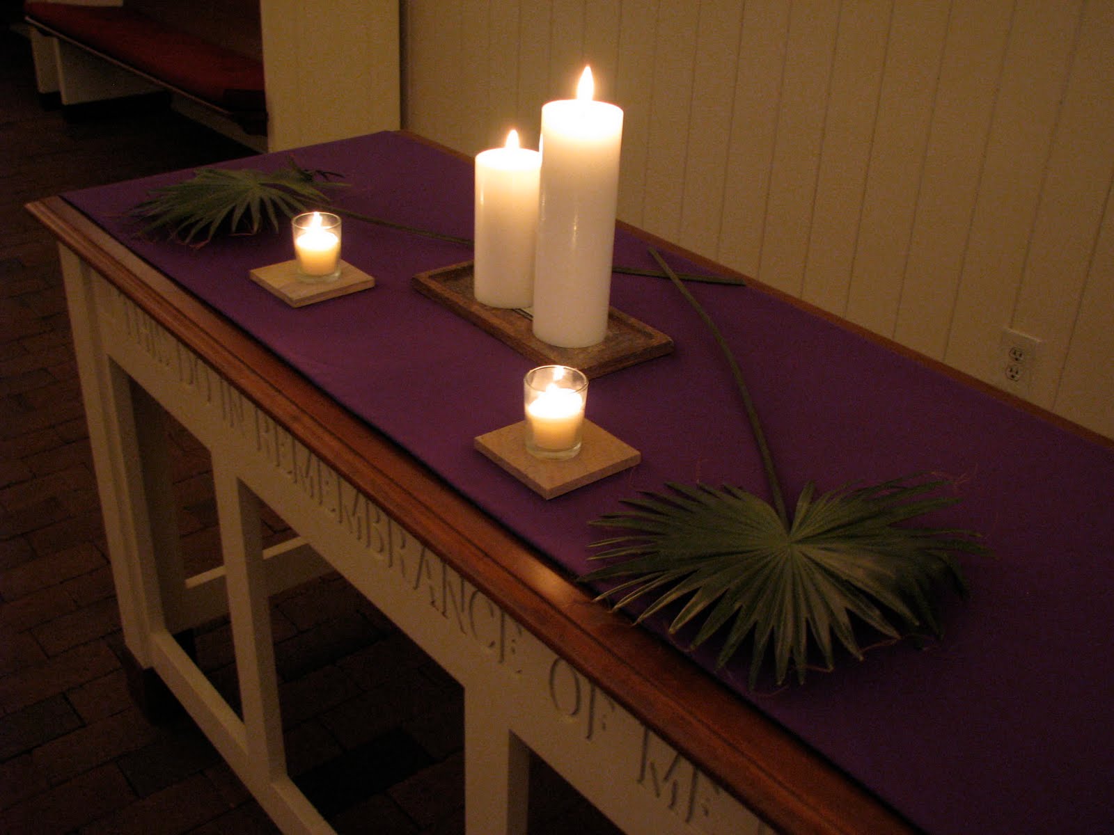 The front communion table with the candles and palm branches reminding us of the palms from Palm Sunday last year which are then traditionally used to create the ashes for Ash Wednesday.