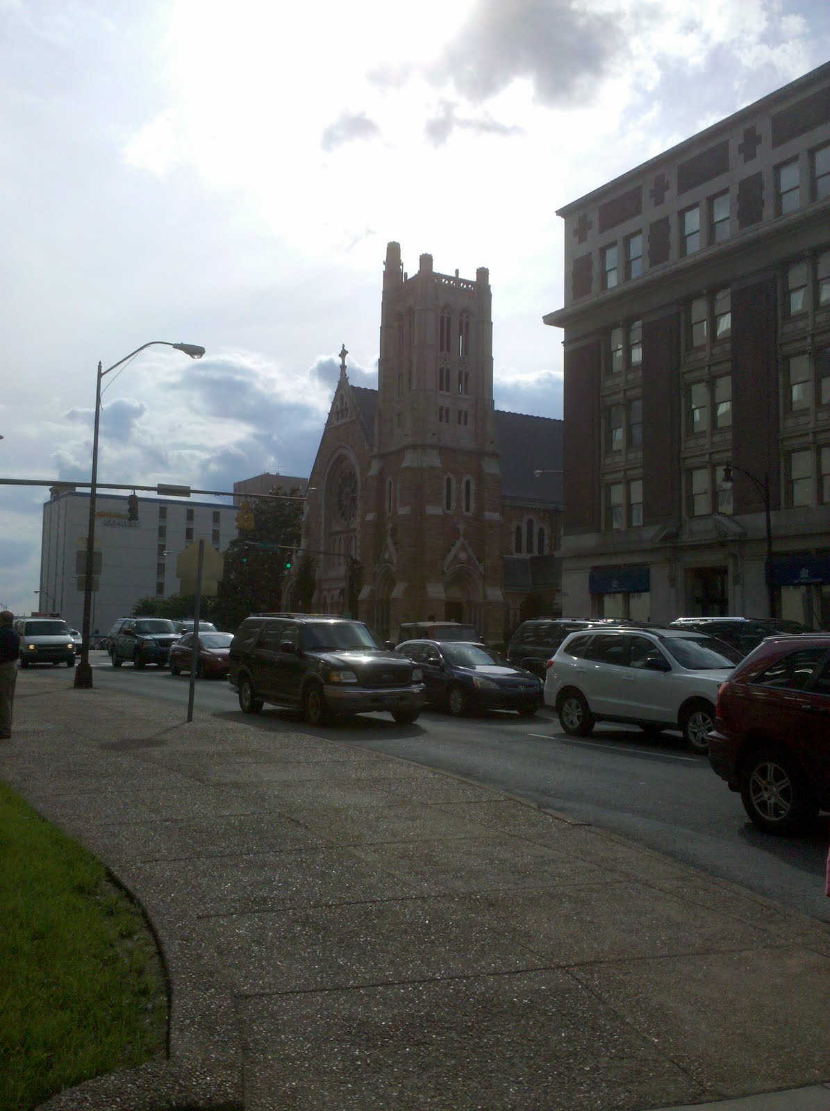 This is First Baptist’s steeple from the top of the hill on 7th street. Nashville’s downtown is very hilly, and First Baptist is basically at the crest of the hill.