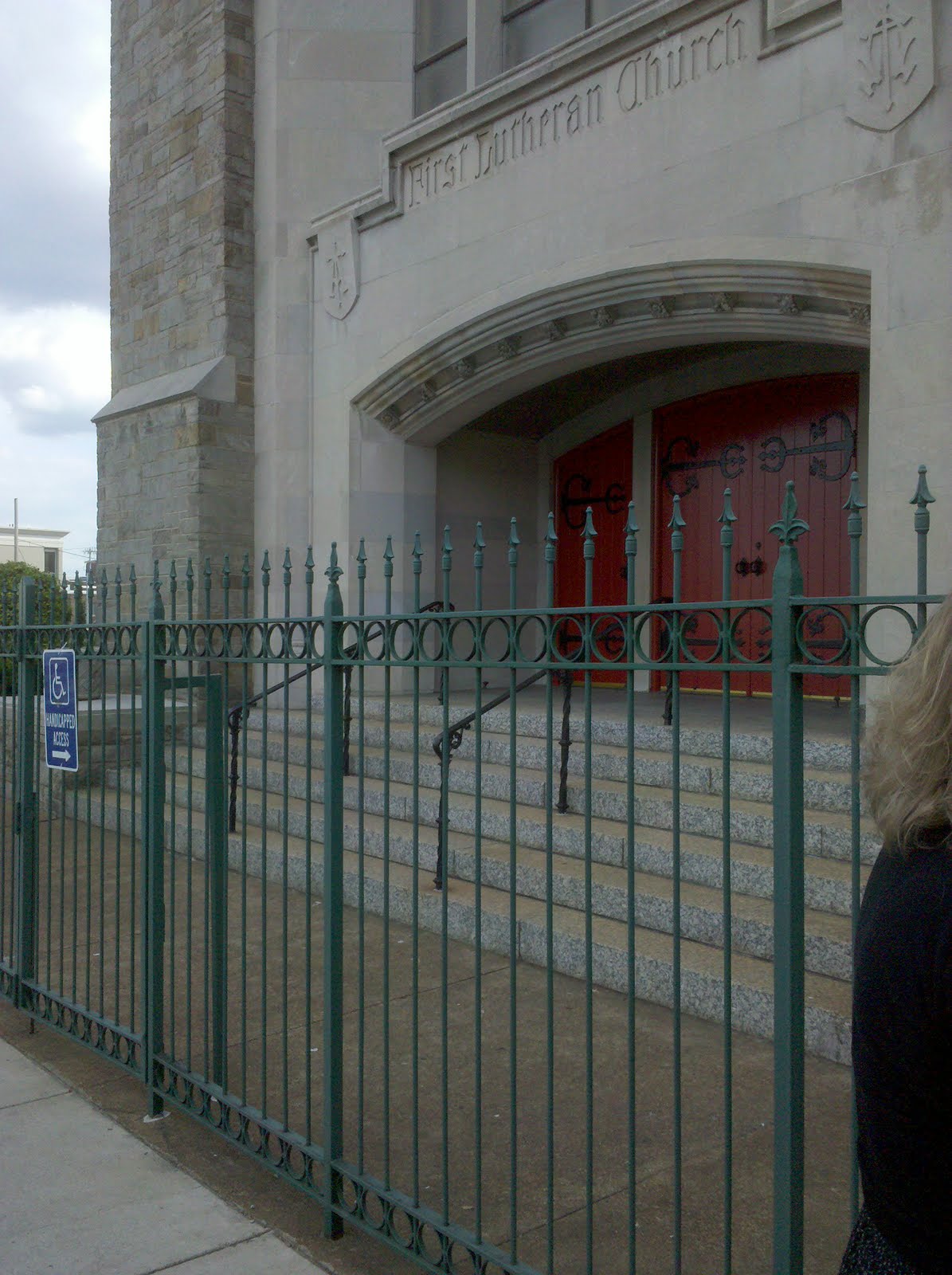 From the Red Doors you might guess this is First Lutheran Church (or you are really observant and see the name carved above the door). It was right across the block from First Baptist.