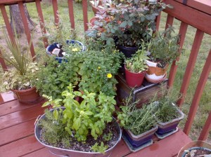 This is our “kitchen herb” garden on the back porch today. It’s doubled in size over the past few weeks! I love having fresh herbs right outside the door! Now I just need to learn to cook with them that will keep up with how fast they are growing!