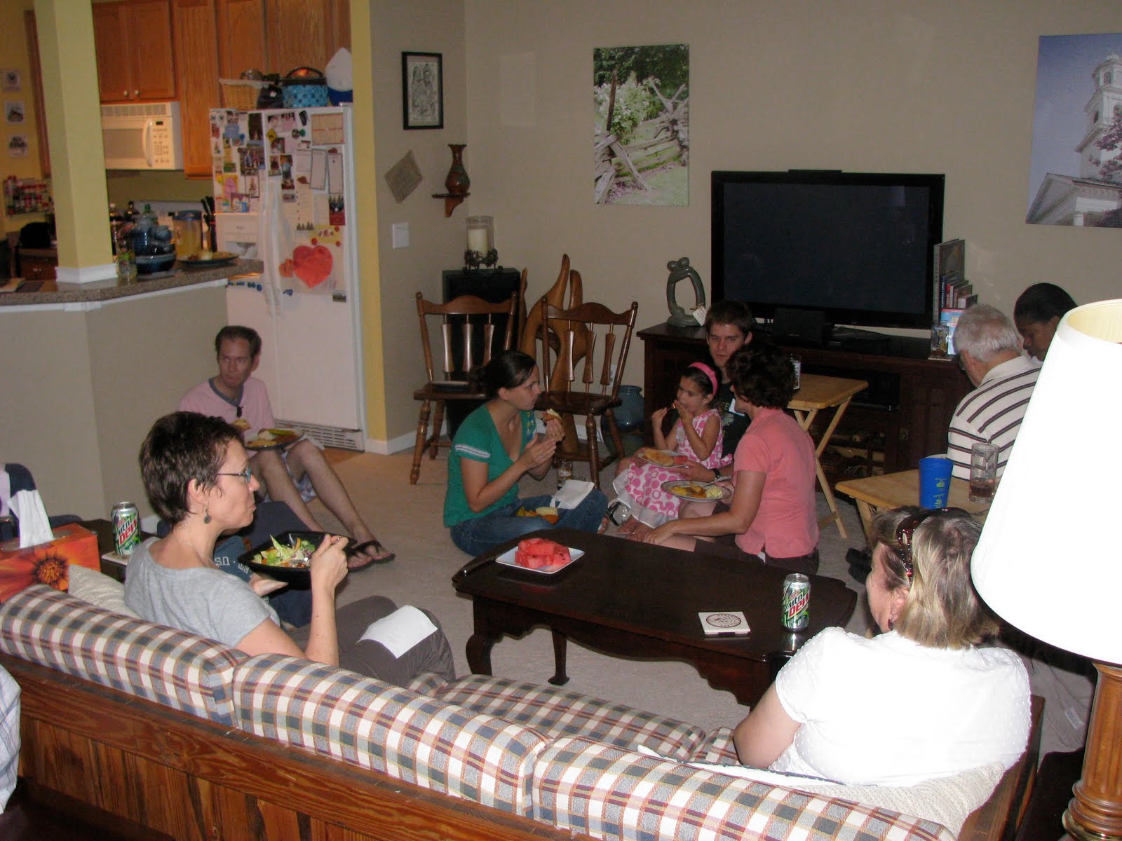 So-we had 30 people at our house this Wednesday evening for an impromptu cookout to meet our friends. It was a wonderful time! I took a moment to look around and enjoy the opportunity to watch everyone talking, laughing, playing games, and sharing a meal together. Everyone showed up with something in hand to contribute to the meal, and we had a feast! There was so much food eaten, and so much food leftover. I recall hearing someone say it was like loaves and fishes being multiplied before our very eyes. Food, friends, and fellowship make a festive, holy combination.